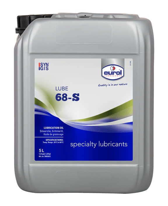 Eurol Lube 68-S met een hoge concentratie Eurol SYNGIS Technology is een volsynthetisch smeermiddel, speciaal ontwikkeld voor zwaarbelaste transmissies waar een regulier smeermiddel onvoldoende is. Eurol Lube 68-S is geschikt voor hydraulische systemen en transmissies met veel slijtage en/of oververhittingsproblemen, zwaarbelaste transport- en aandrijfkettingen, pneumatische systemen, vacuumpompen en schroef- en zuigercompressoren