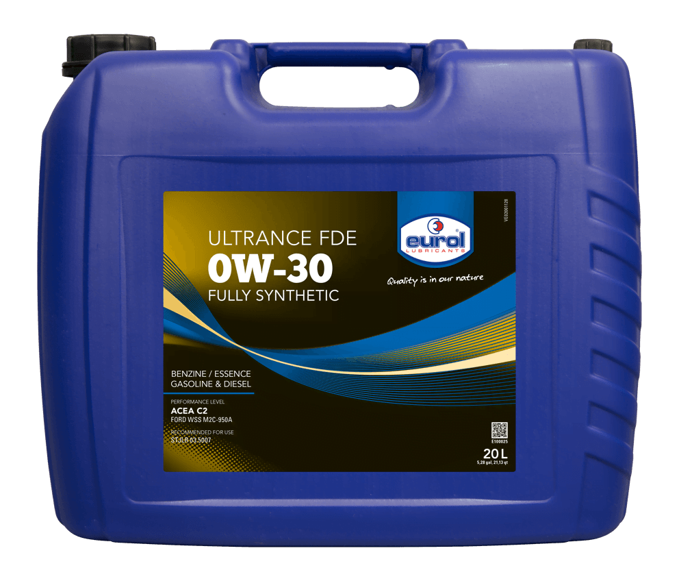 Eurol Ultrance FDE 0W-30 is een volsynthetische motorolie voor benzine- en dieselmotoren speciaal ontwikkeld voor de laatste modellen personenauto’s van Ford. Ultrance 0W-30 voldoet aan de Ford WSS-M2C950-A specificatie. Ultrance FDE 0W-30 zorgt snel voor een stabiele smeerfilm bij de koude start en biedt hoge thermische stabiliteit onder zeer zware bedrijfsomstandigheden. Ultrance FDE 0W-30 heeft een optimaal dispergerend en detergerend vermogen wat de motor schoon houdt.